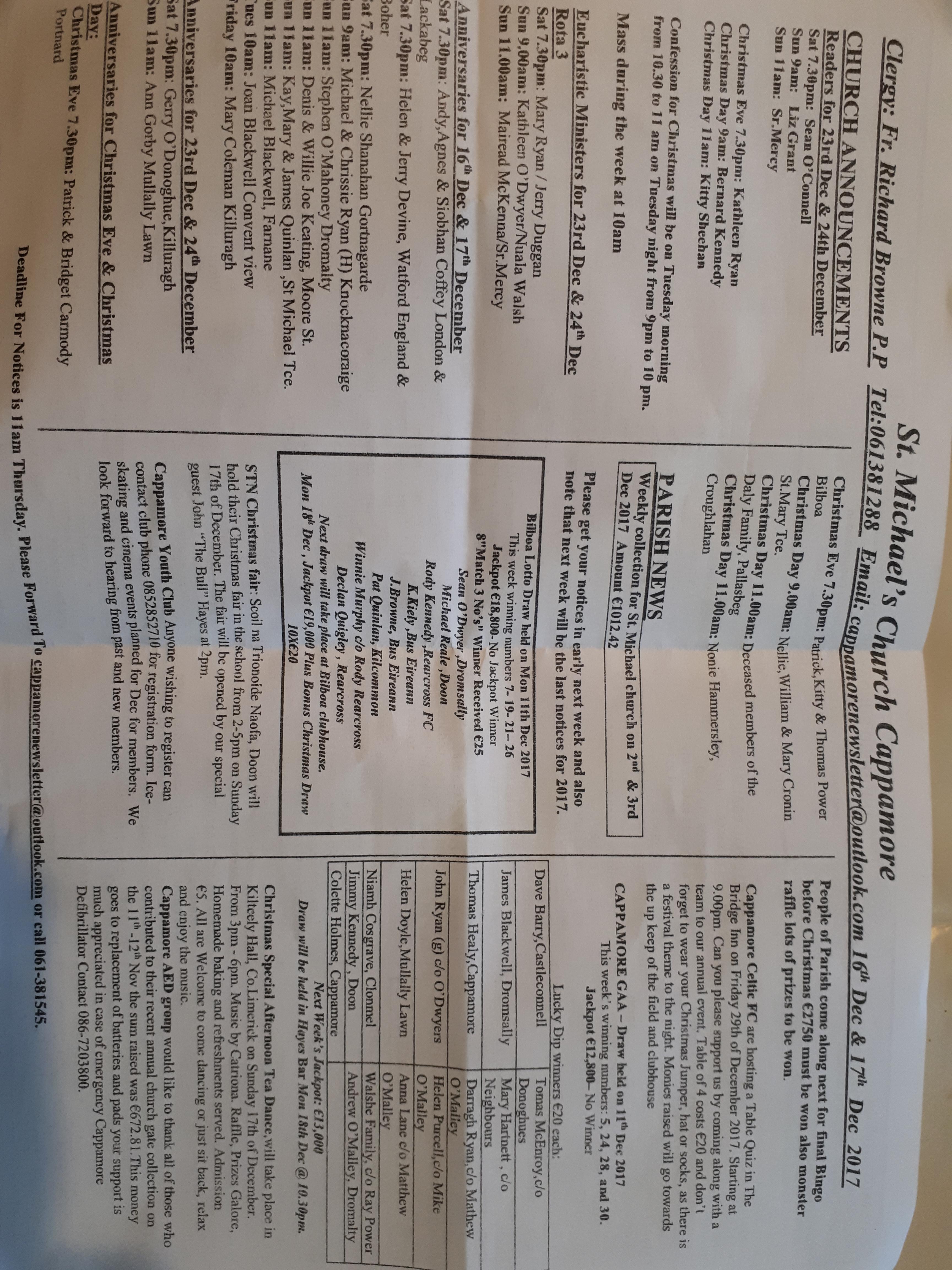 Cappamore GAA Leader notes 4Jan 2018