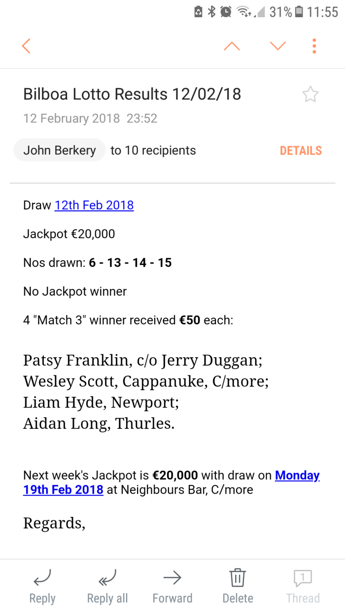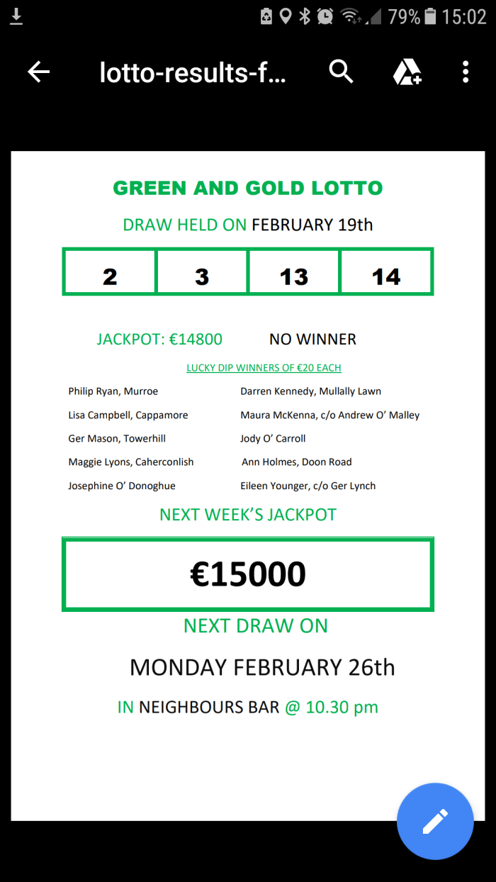 Cappamore GAA Lotto results