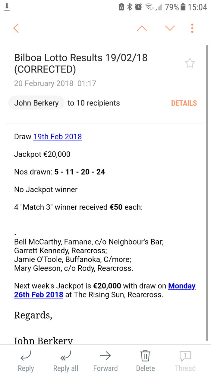 Next weeks jackpot €15000