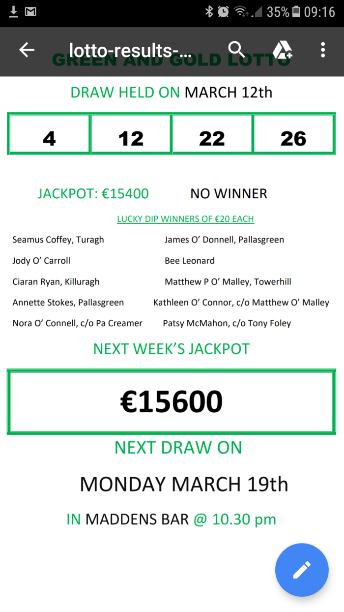 Cappamore GAA Lotto results