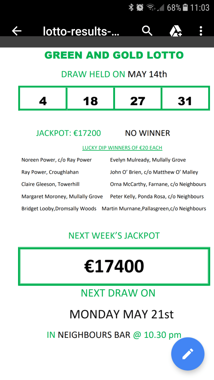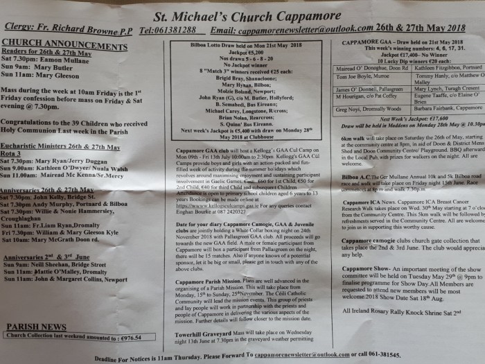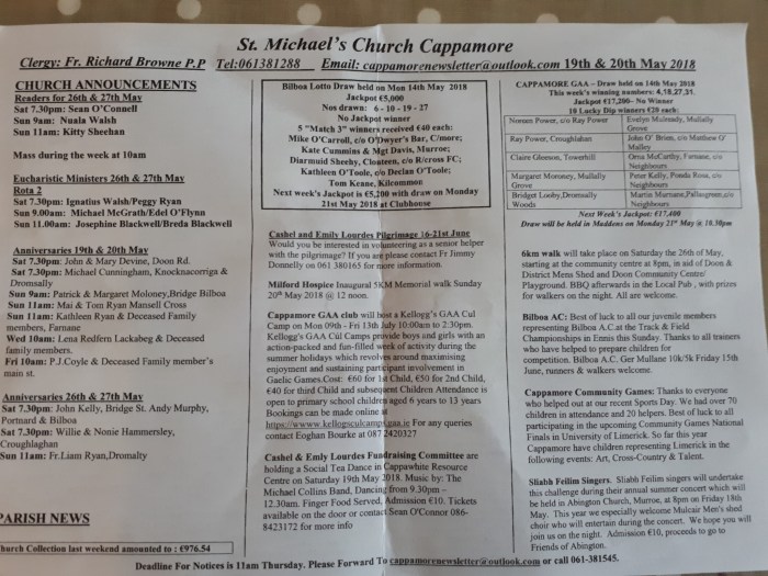 Bridget Looby,Dromsally Woods Martin Murnane,Pallasgreen,c/o Neighbours