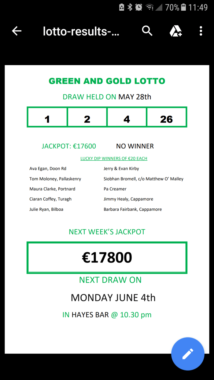 A Fundraiser table quiz will take place next Friday May 25 at 9:15 in O’Dwyers Bar to support our U14 Féile Hurling panel who are travelling in July.
