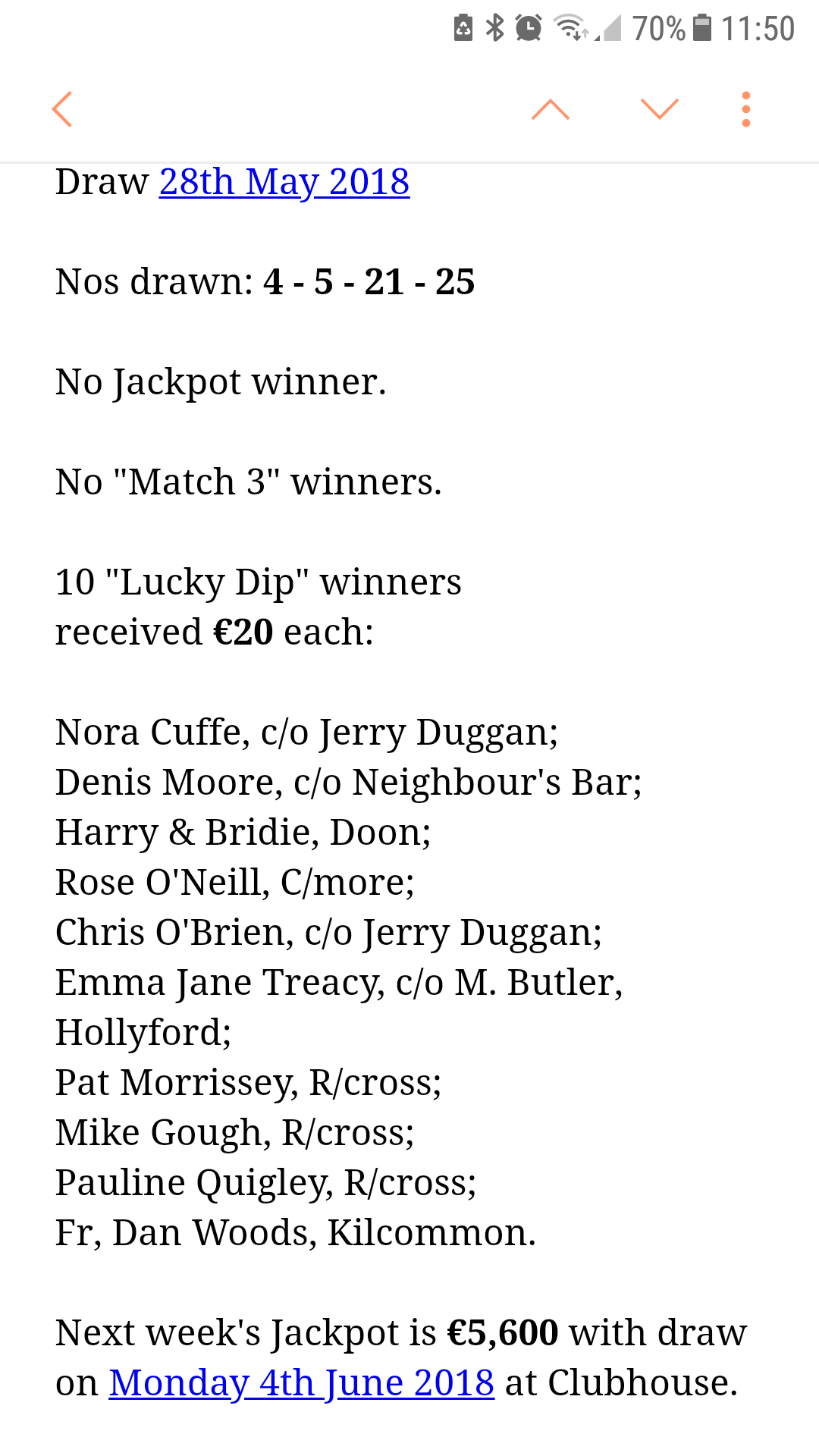 A Fundraiser table quiz will take place next Friday May 25 at 9:15 in O’Dwyers Bar to support our U14 Féile Hurling panel who are travelling in July.