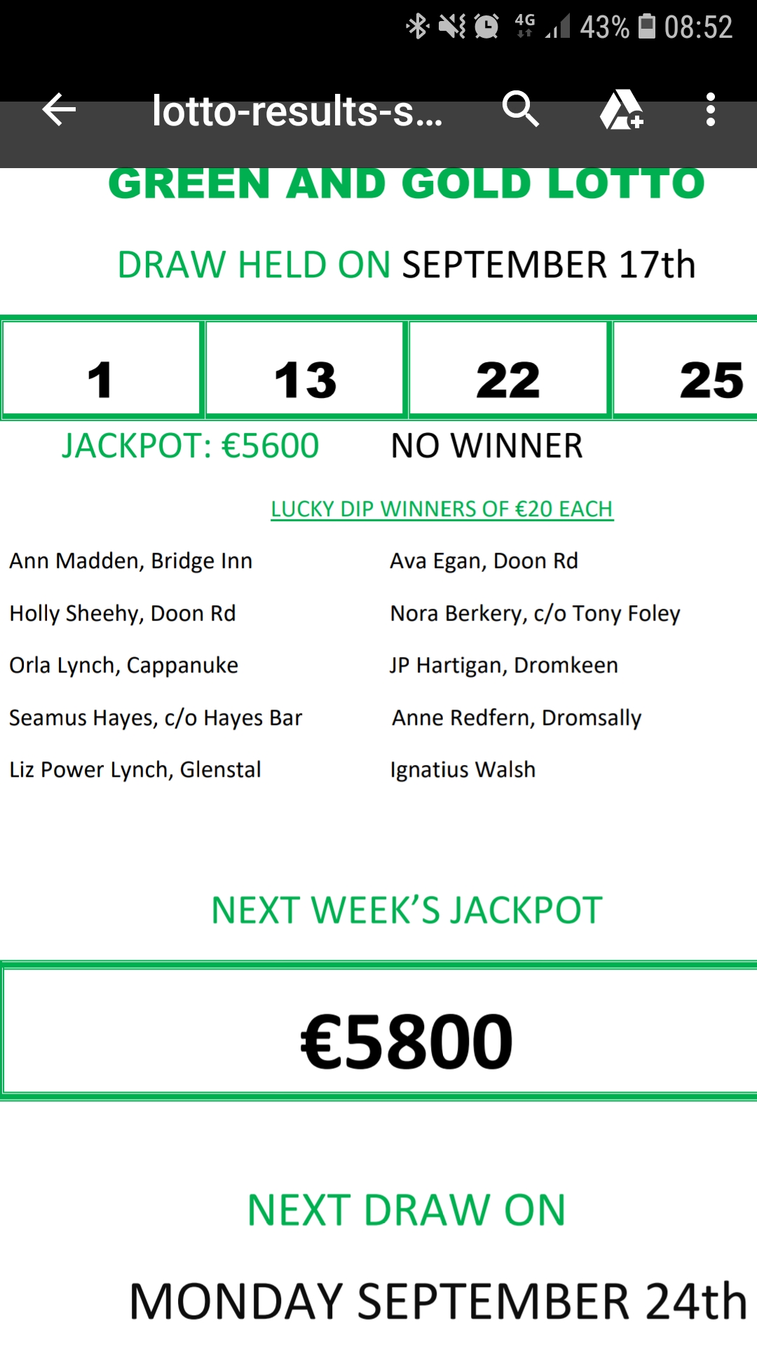 Cappamore GAA Lotto Results
