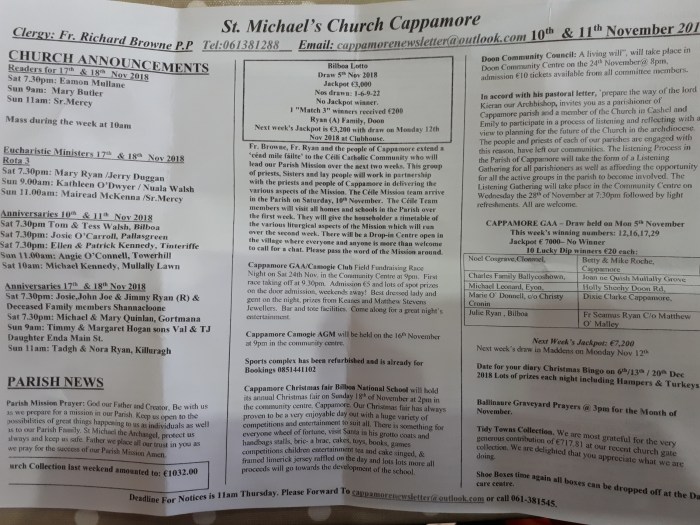 “Cappamore Mission Bridges a 30 year gap”. Article in last week’s Limerick Leader regarding the upcoming mission.