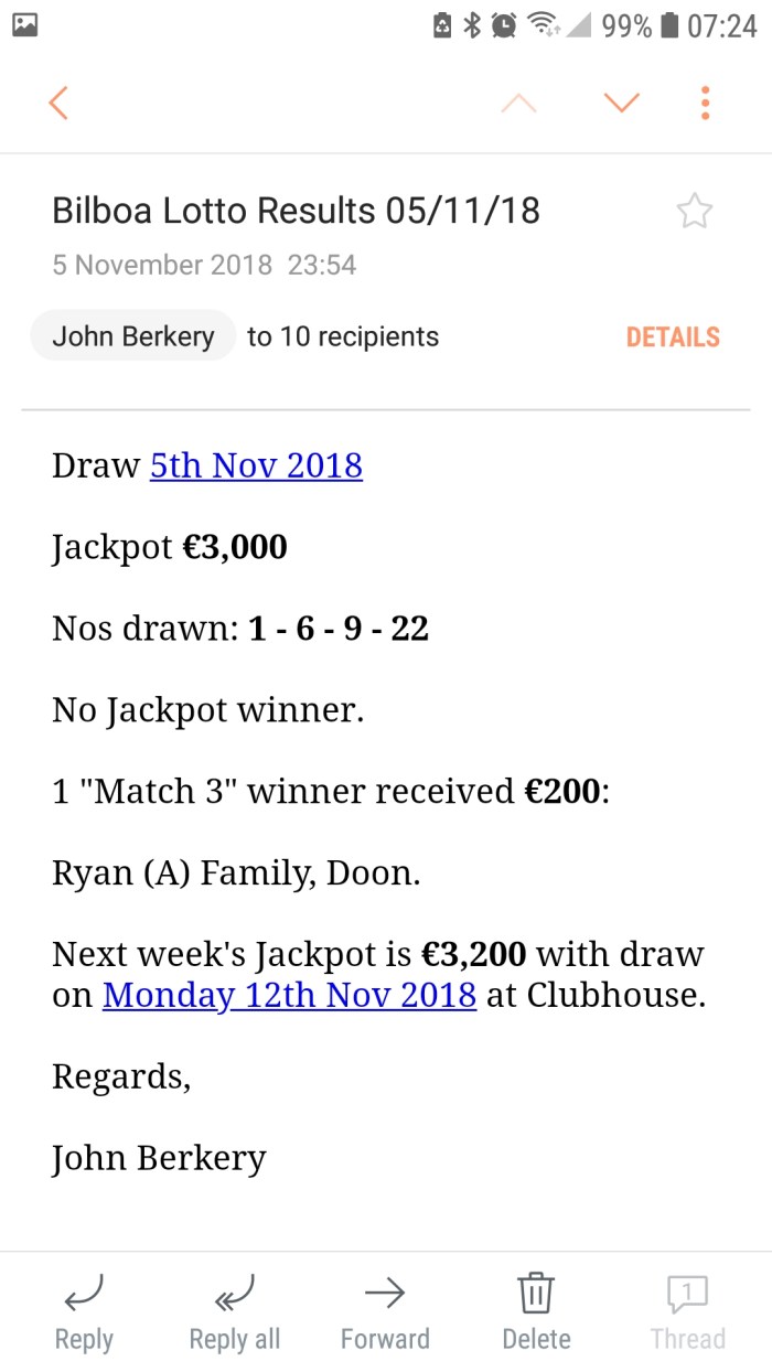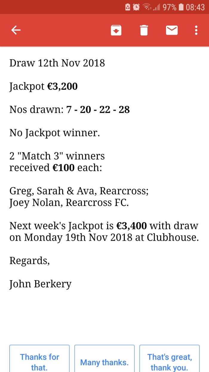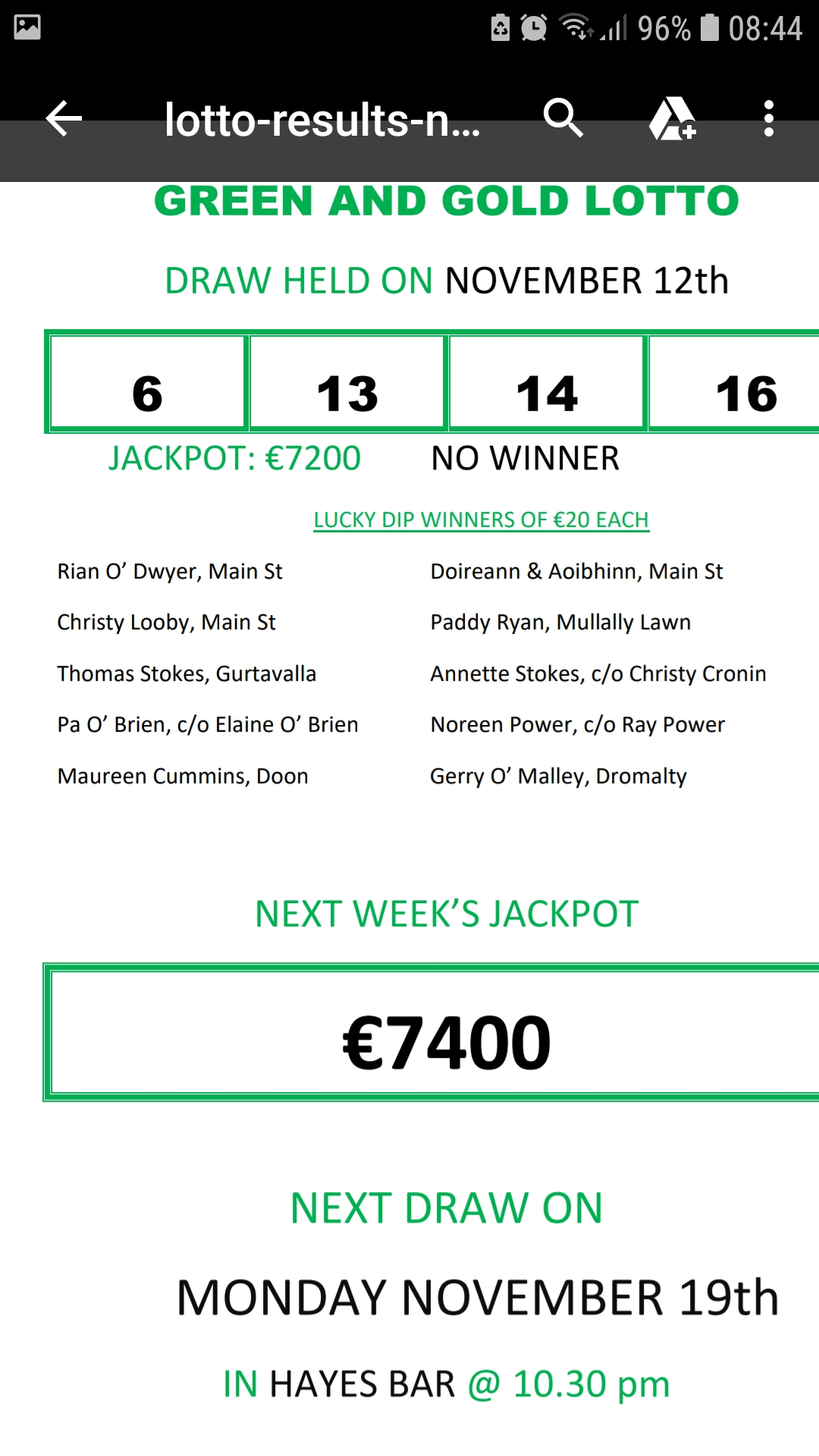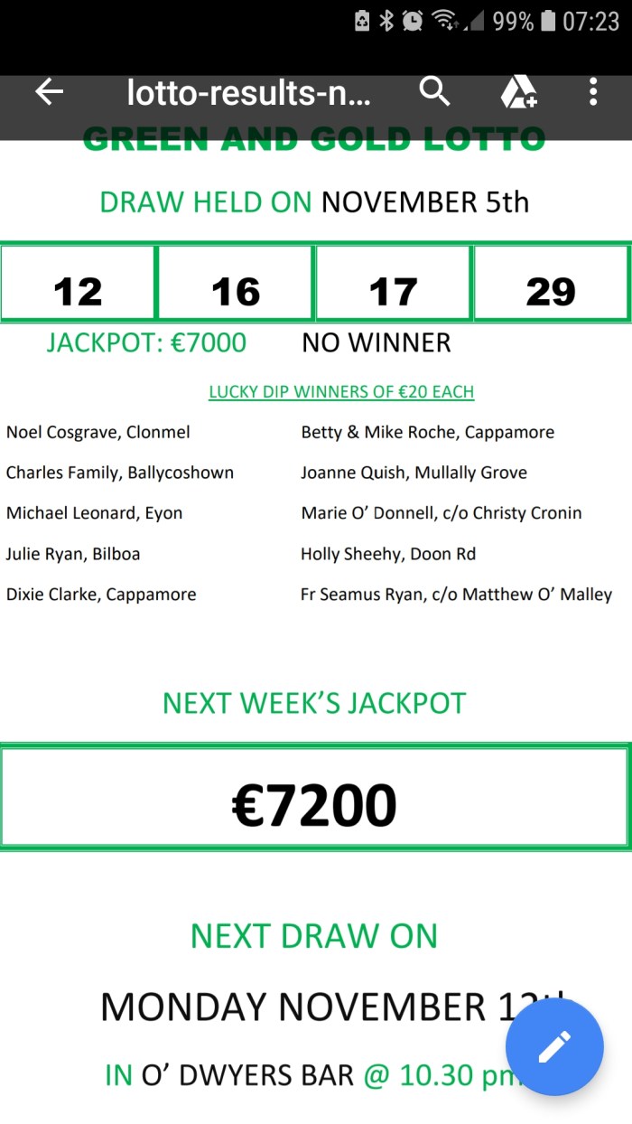 Next weeks draw in O’ Dwyers on Monday Nov 12th