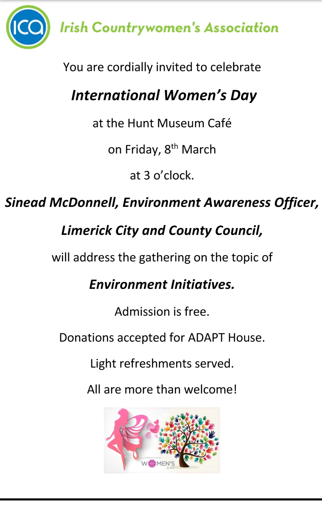 ICA International Women’s Day Friday 8th March
