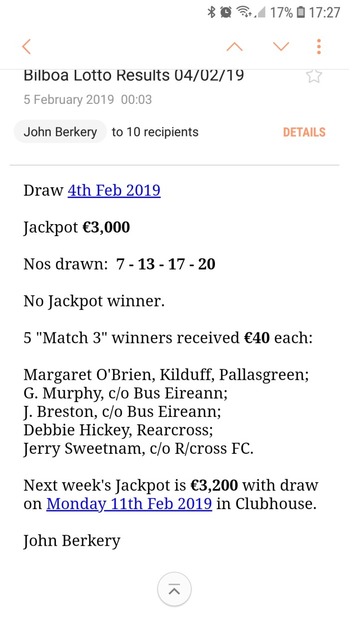 Cappamore GAA Lotto Results