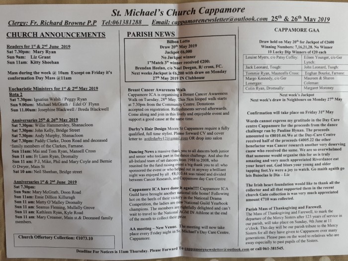 Cappamore Notes 27 – 05 – 2019