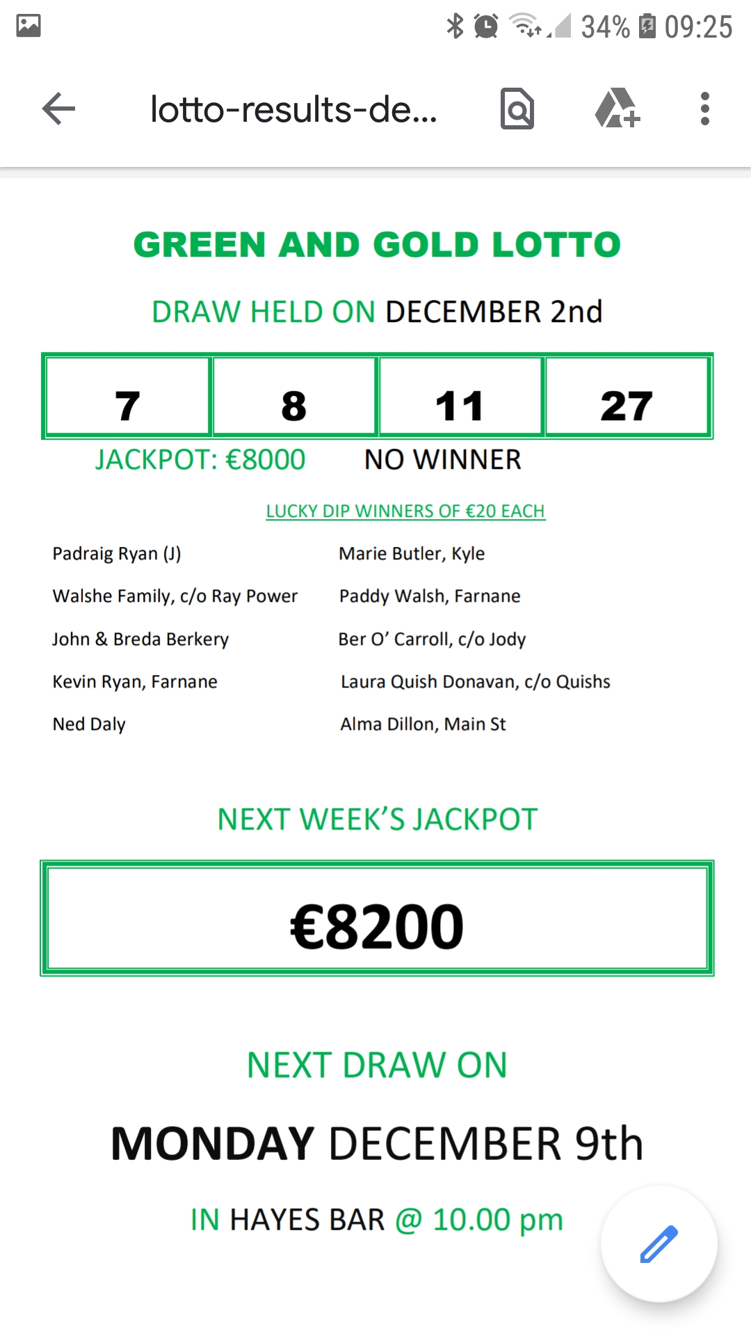 Cappamore GAA and Camogie Lotto Results