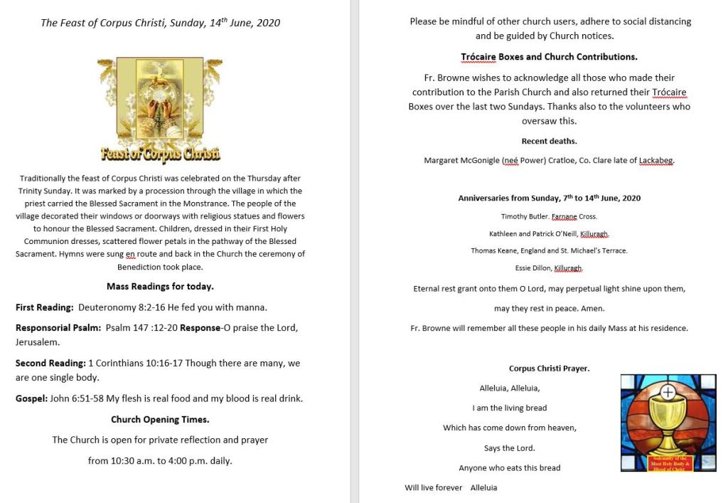 Great to see many clubs and organisation are making plans to return to activities. For example the Green and Gold Club Lotto for GAA is being held on Monday again and the Ladies soccer team are planning to return to training in the coming weeks. Looking forward to hearing more news over the next few weeks.