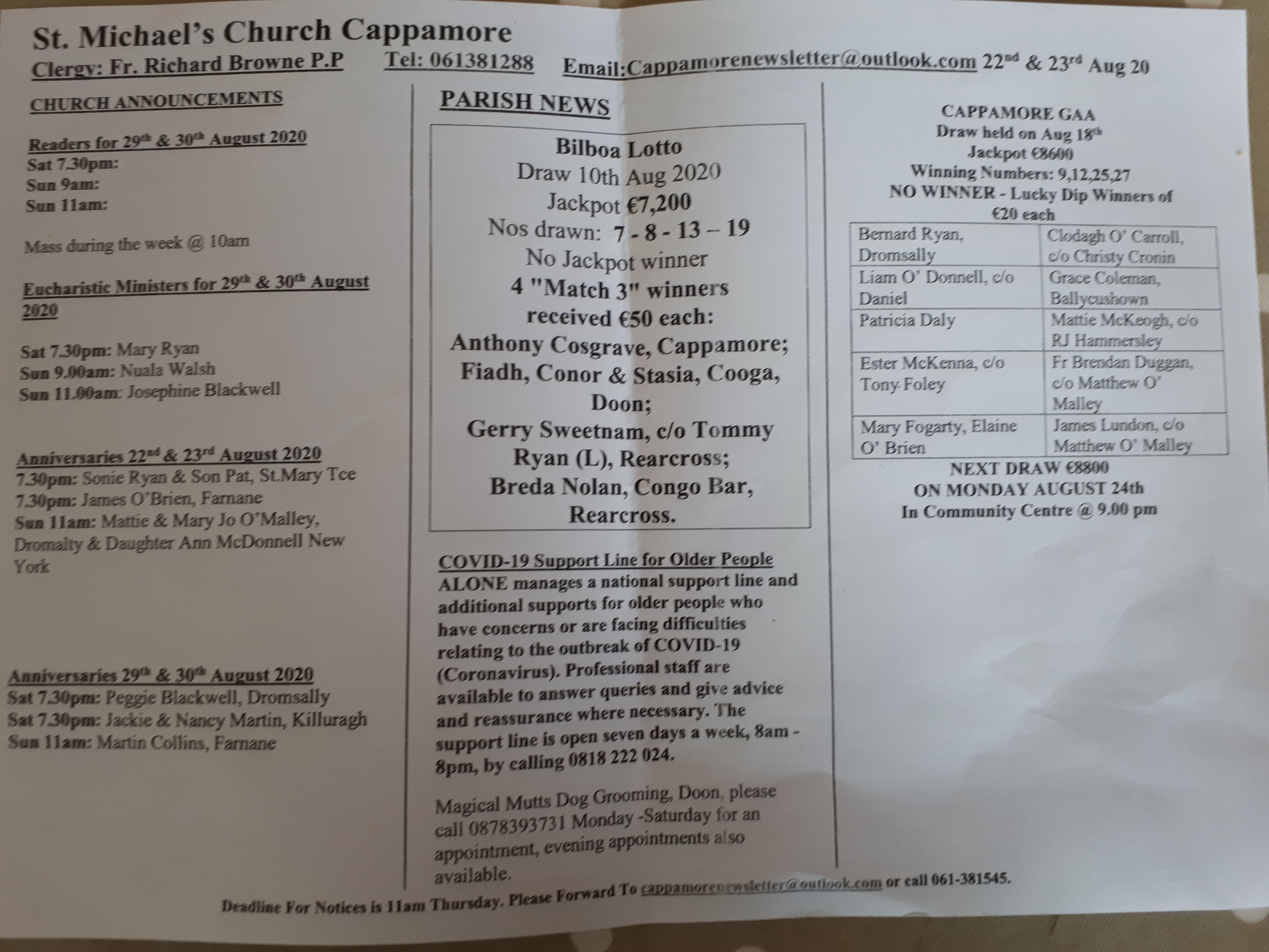Doon V Cappamore 7:00pm, Venue: Doon, Referee: Mike Flannery