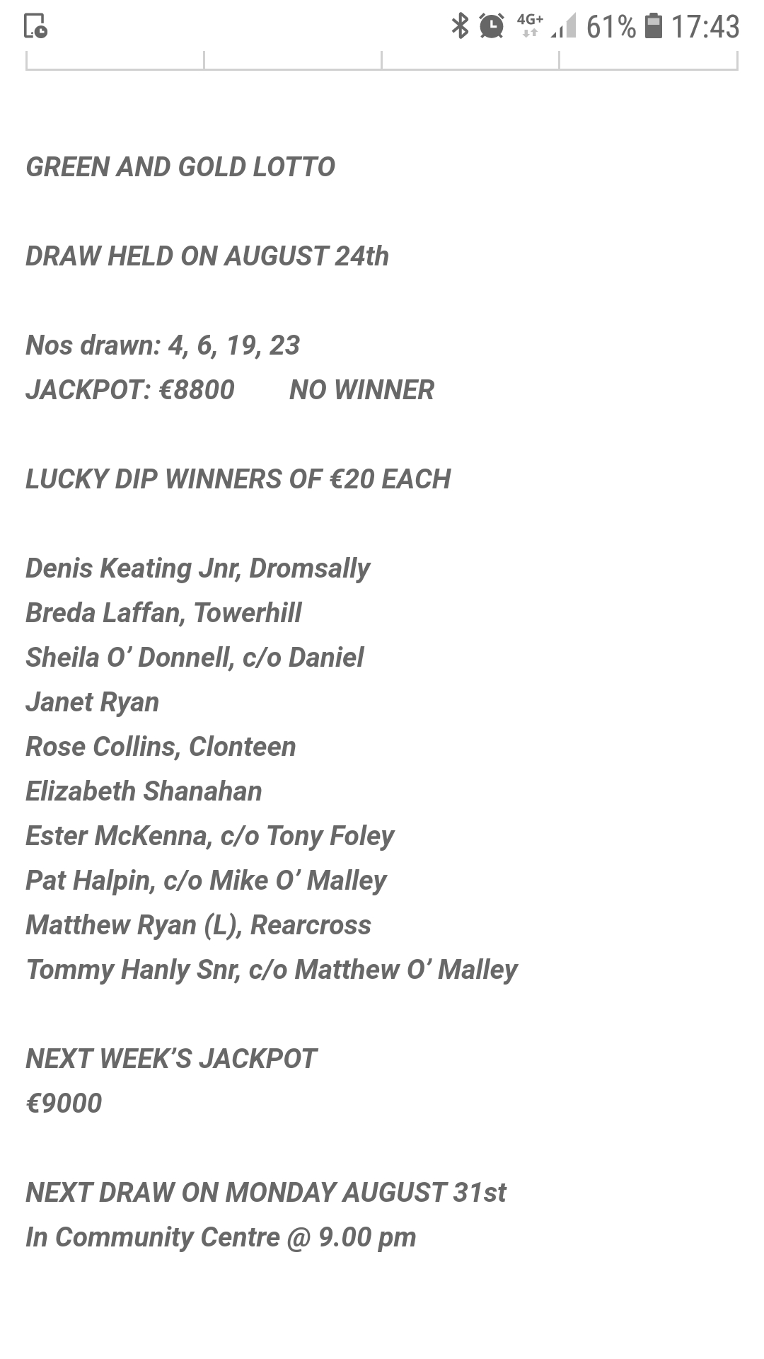 Cappamore V Naomh Eoin/ Cnoc Gaels 6:30pm Venue: Caherconlish Referee: Timmy Mc Grath