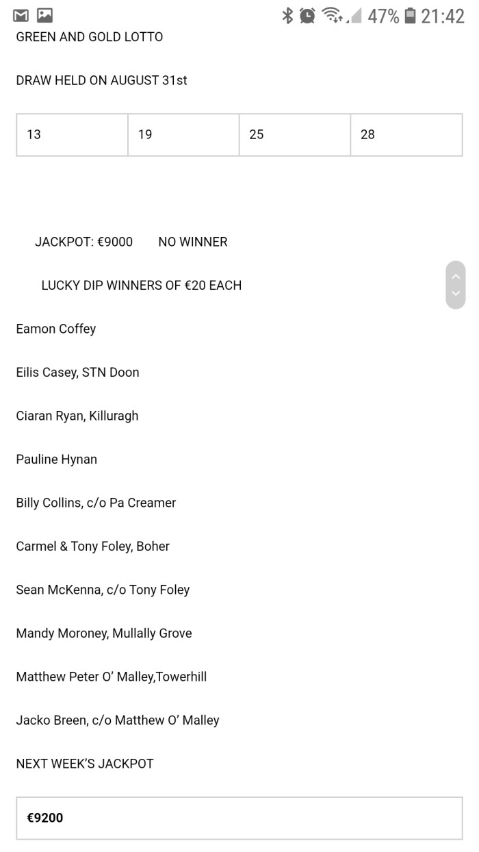 Cappamore GAA and Camogie Lotto Results