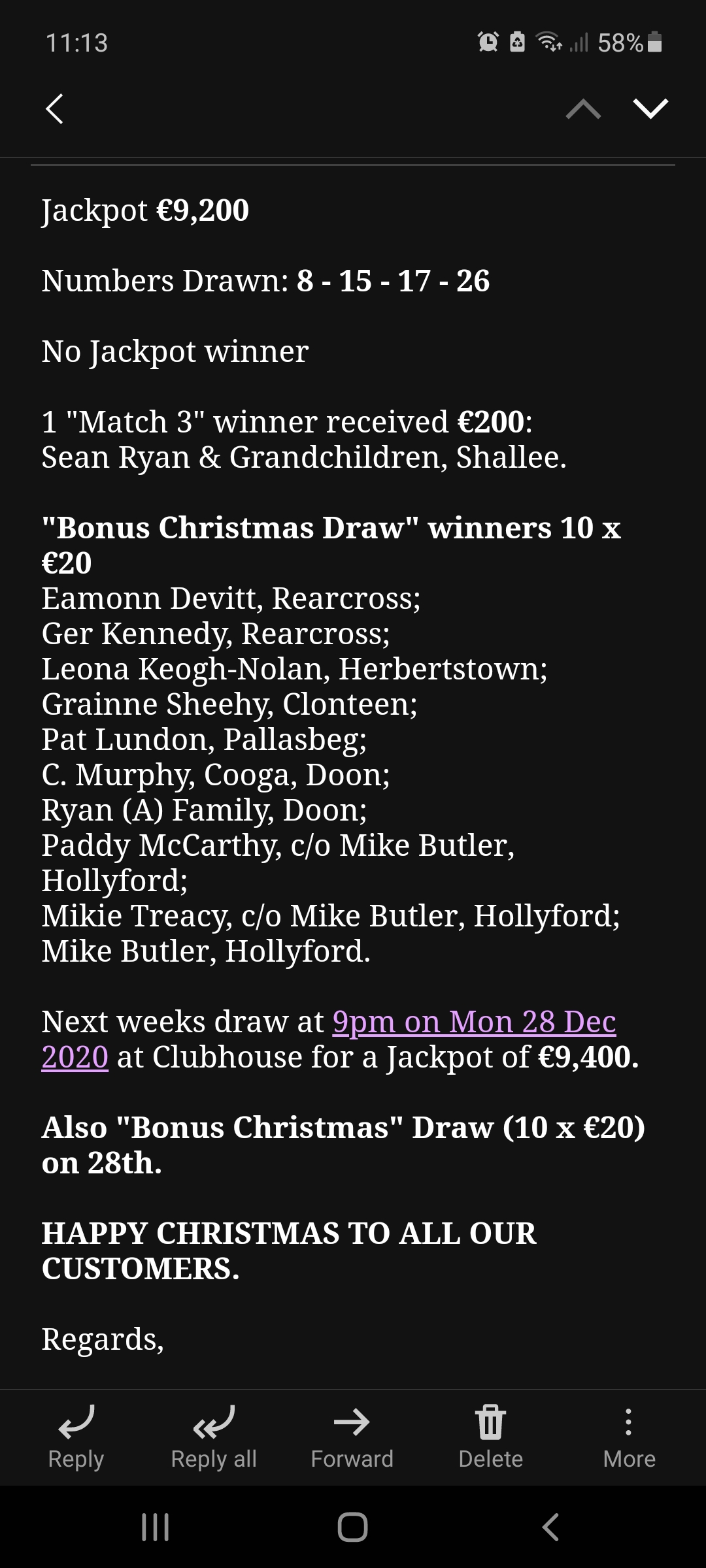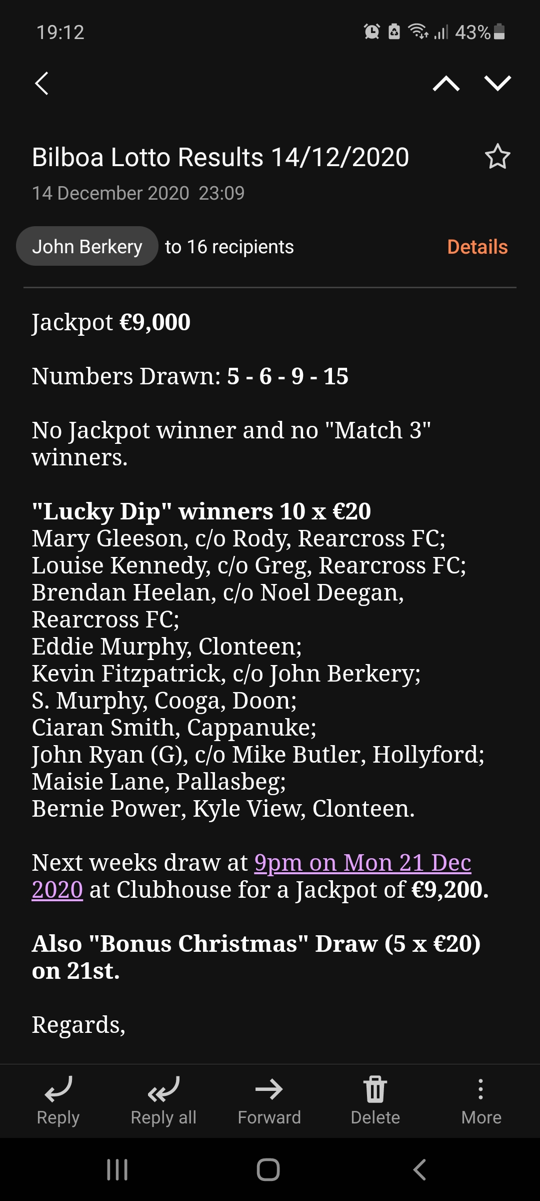 LUCKY DIP WINNERS OF €20 EACH