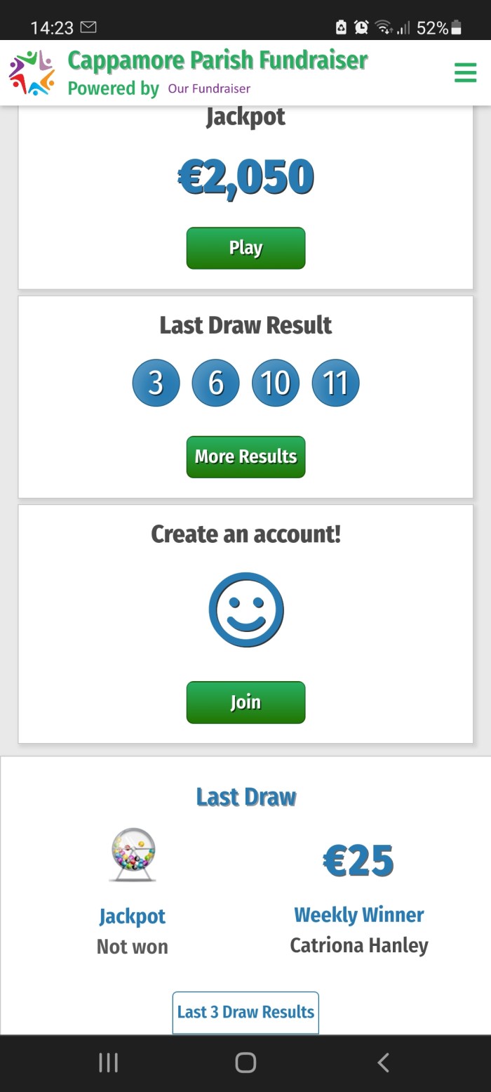 It’s really easy to enter or buy more lines, just visit our fundraiser site https://www.ourfundraiser.ie/org/cappamoreparish and log in with the email/mobile and password you previously registered with. Then pick the ‘Play’ button and buy a ticket for €2 for 1 line or €5 for 3 lines. Please spread the word and share this with family and friends, it will make a big difference. Thank you so much for your support and good luck in the draw! Fundaiser Team |
