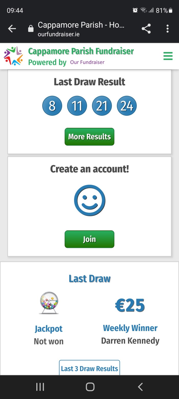 The next draw for a Jackpot of €16,800 will take place at the Clubhouse on Mon 14th Feb 2022 at 9pm.