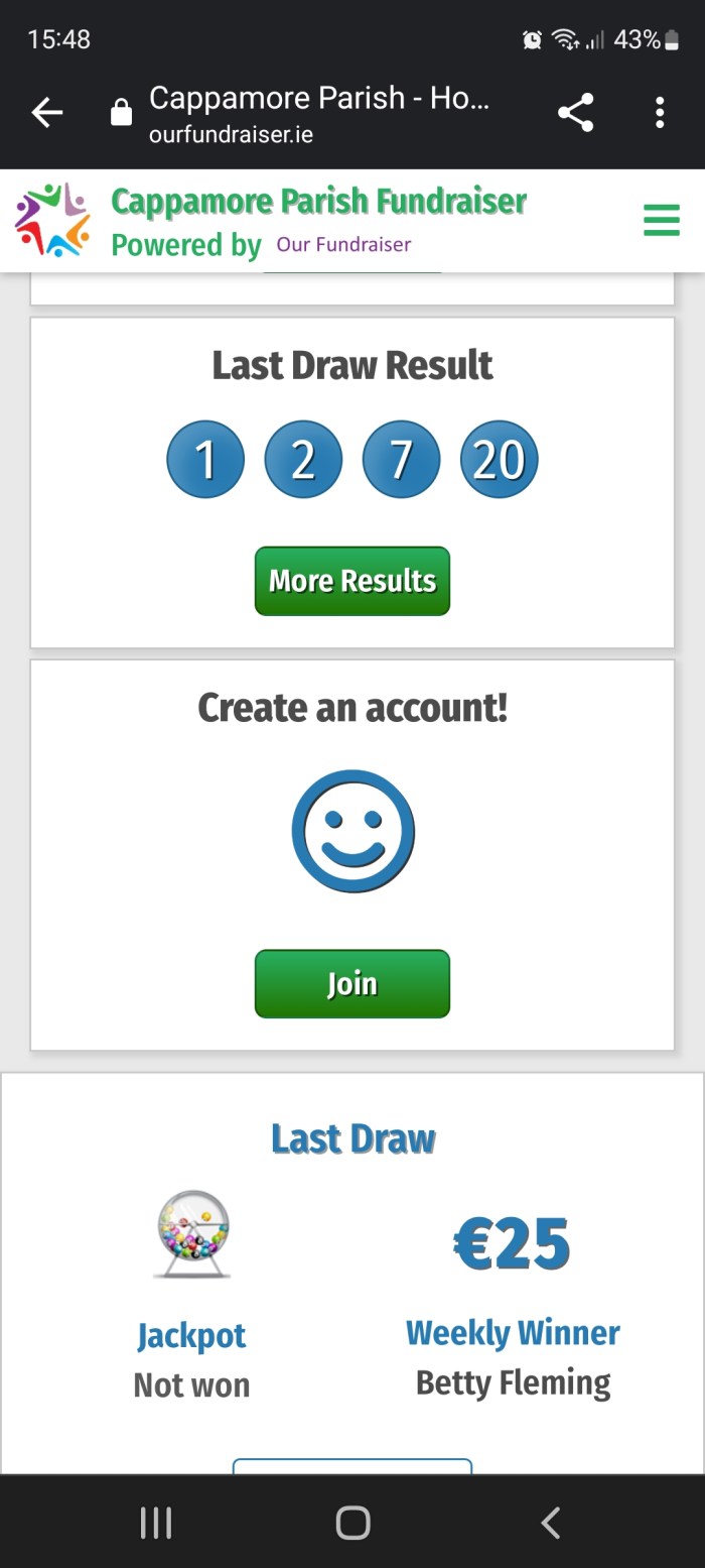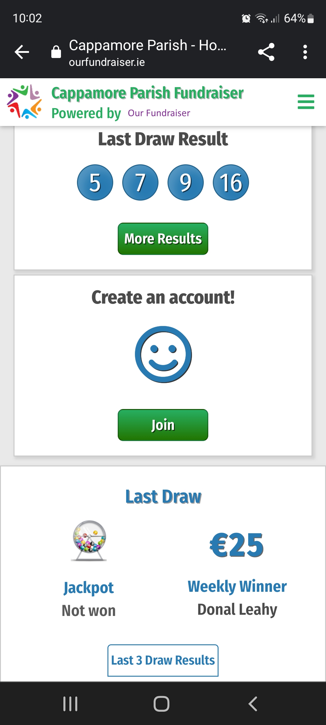 Next draw for a Jackpot of €20,000 will take place at the Clubhouse on Mon 20th Jun 2022 at 9:30pm.