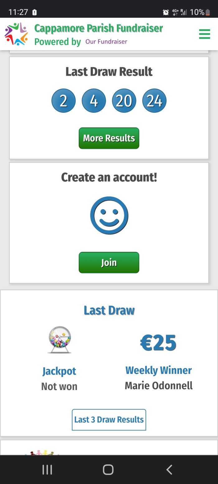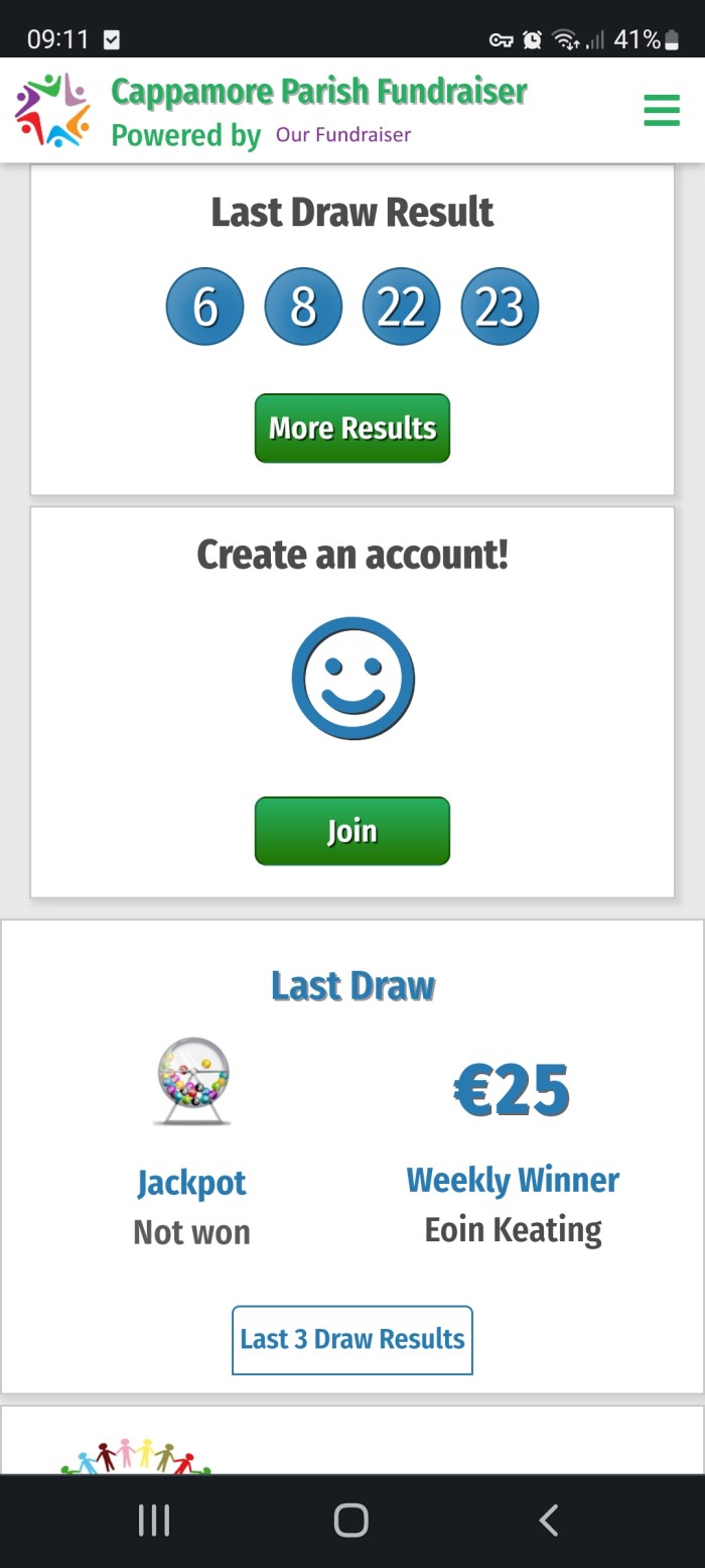 Next draw for a Jackpot of €20,000 will take place at the Clubhouse on Mon 25th Jul 2022 at 9:30pm.