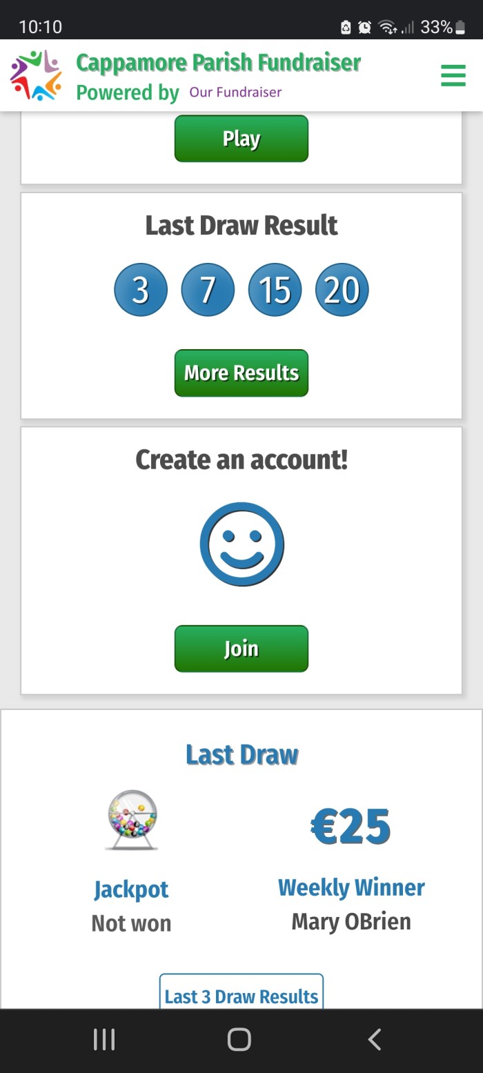 Next draw for a Jackpot of €20,000 will take place at the Clubhouse on Mon 3rd Oct 2022 at 9:30pm.