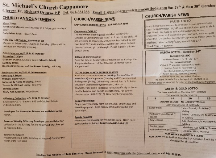 Cappamore Leader Notes 28 Oct 2022