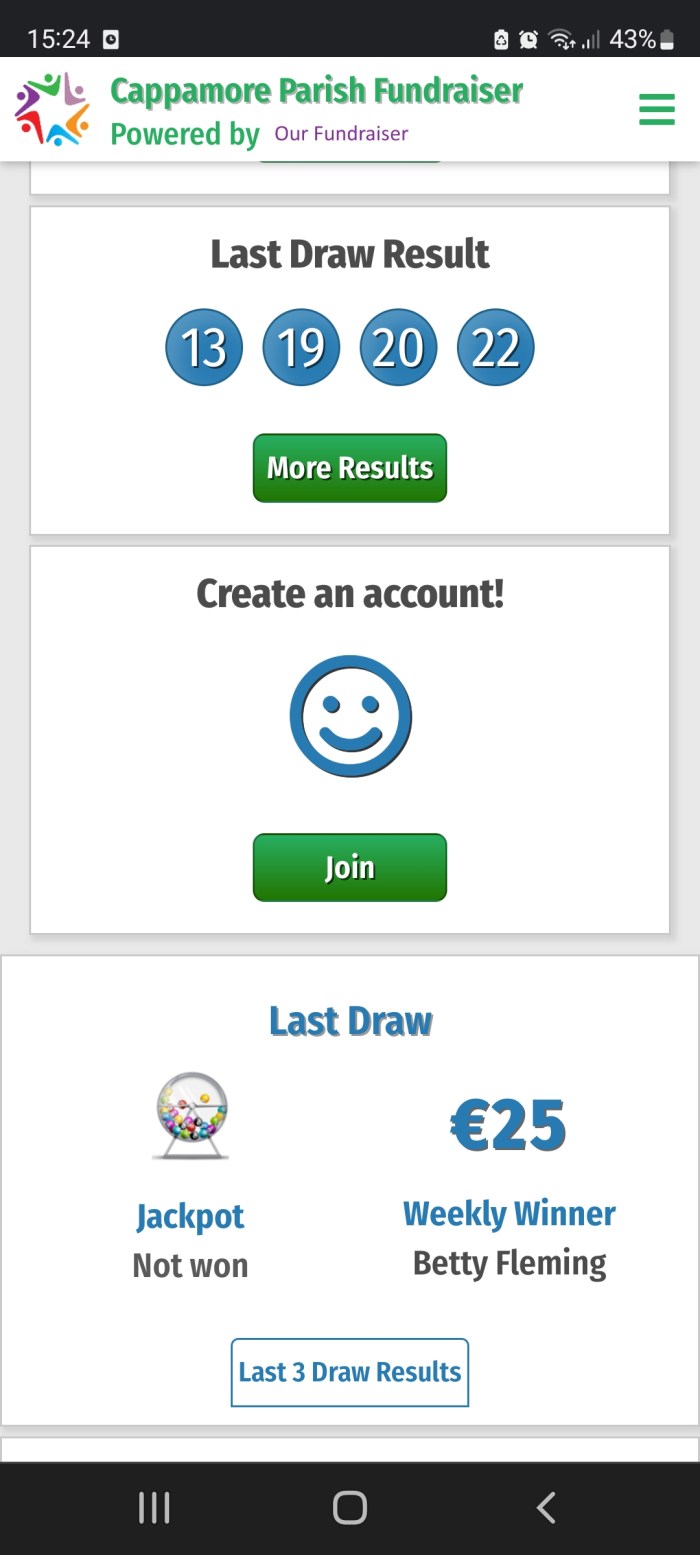 Cappamore St Michael’s Church Lotto Results