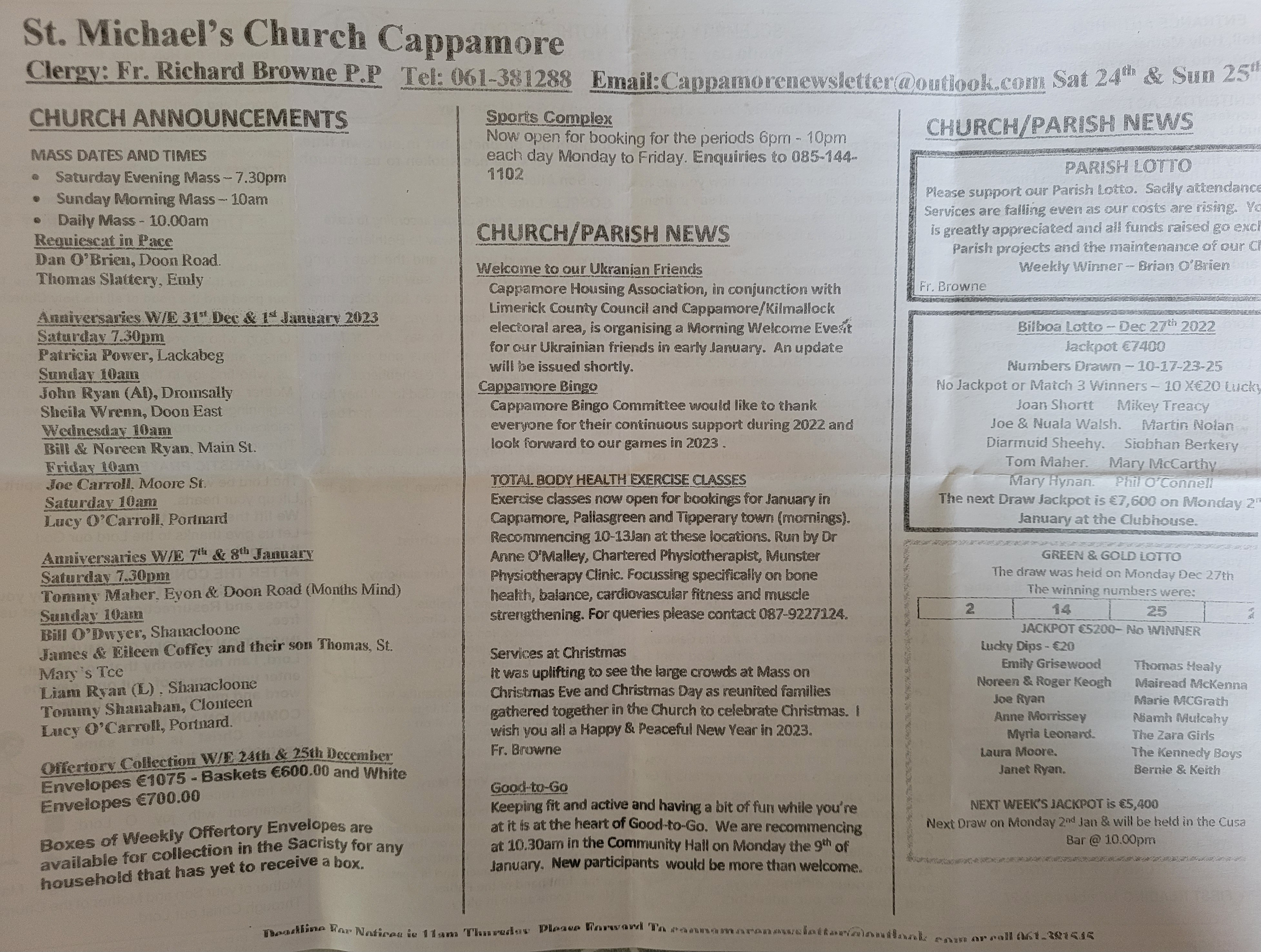 Next draw for a Jackpot of €8,000 will take place at the Clubhouse on Mon 9th Jan 2023 at 9:30pm.