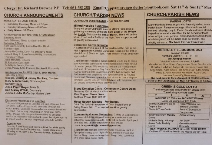 Cappamore Church and Parish Newsletter Posted on March 12, 2023April 11, 2023 by Cappamore Cappamore Church and Parish Newsletter