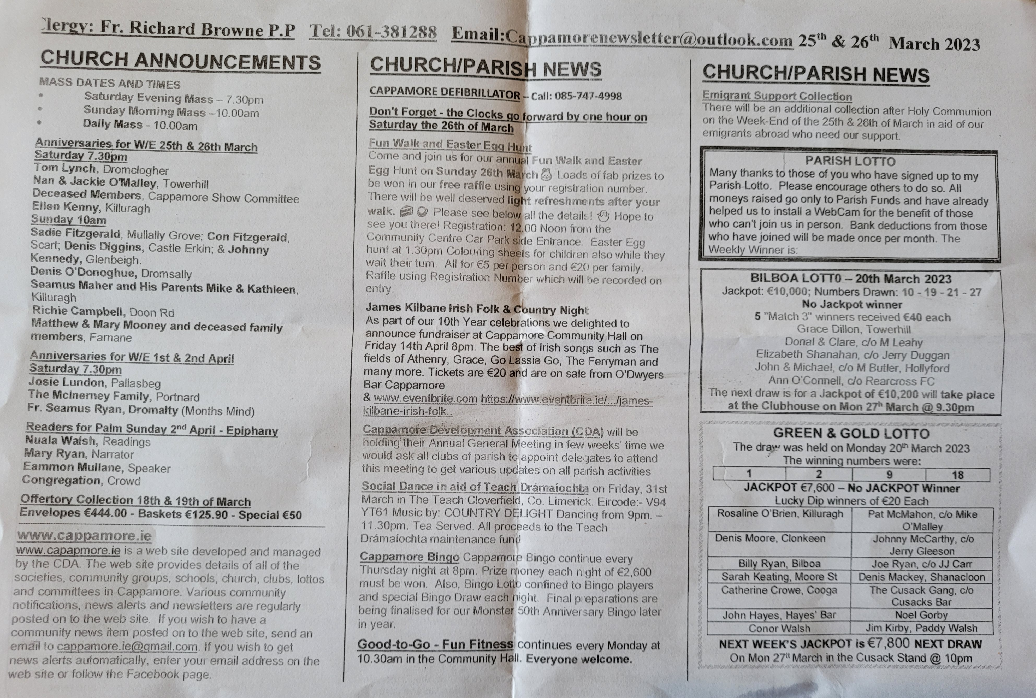 Cappamore Church and Parish Newsletter Posted on March 26, 2023April 11, 2023 by Cappamore Cappamore Church and Parish Newsletter