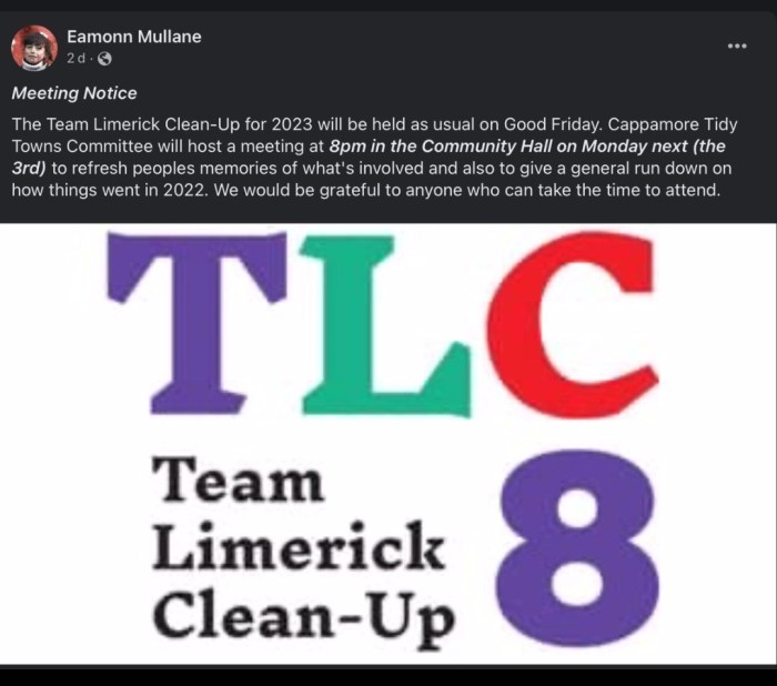 The above Group which includes Cappamore in its Catchment Area will host a Fund-Raising Bonanza Breakfast Morning at its new state of the art Centre at Knockanrawley, Tipperary Town on Friday Morning the 14th of April from 11am —-2pm. A great social morning is anticipated. Your presence and support would be much appreciated on the day. Kind Regards.