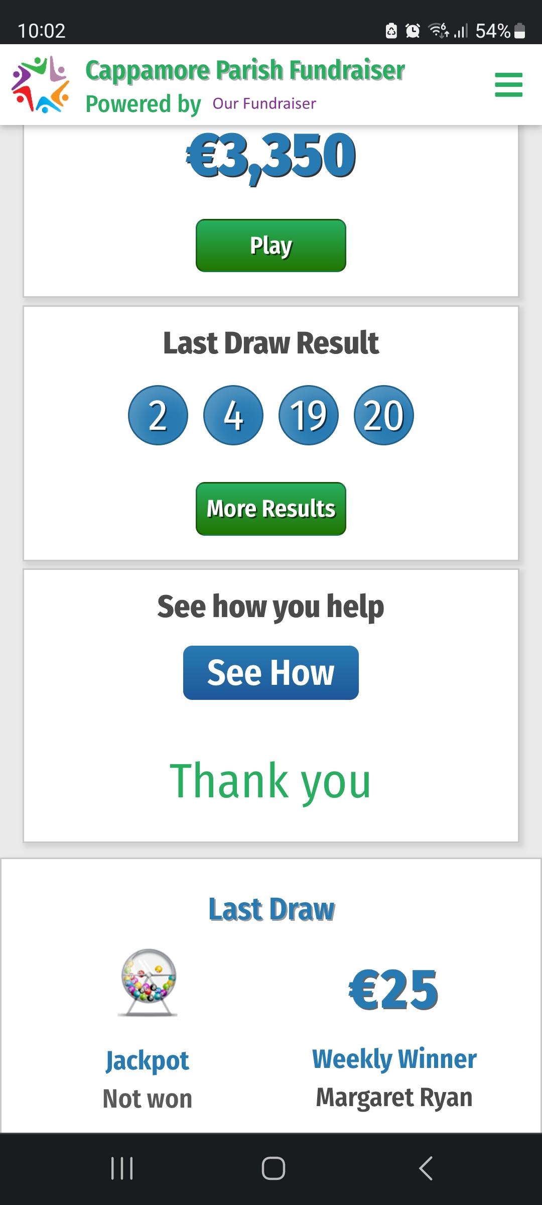 Next draw for a Jackpot of €12,400 will take place at the Clubhouse on Mon 12th May 2023 at 9:30pm.