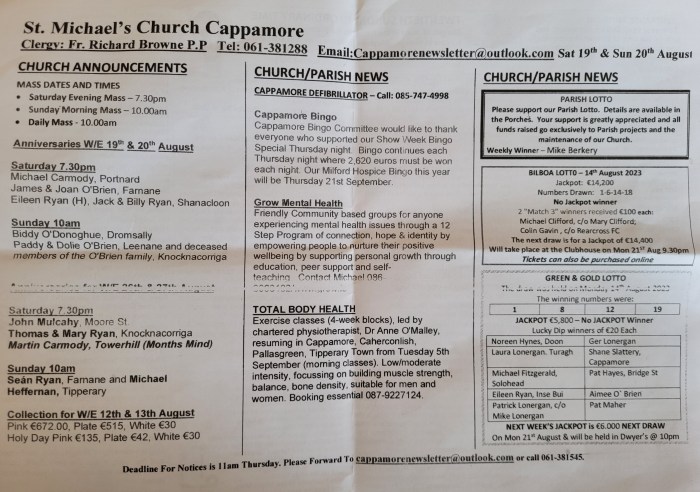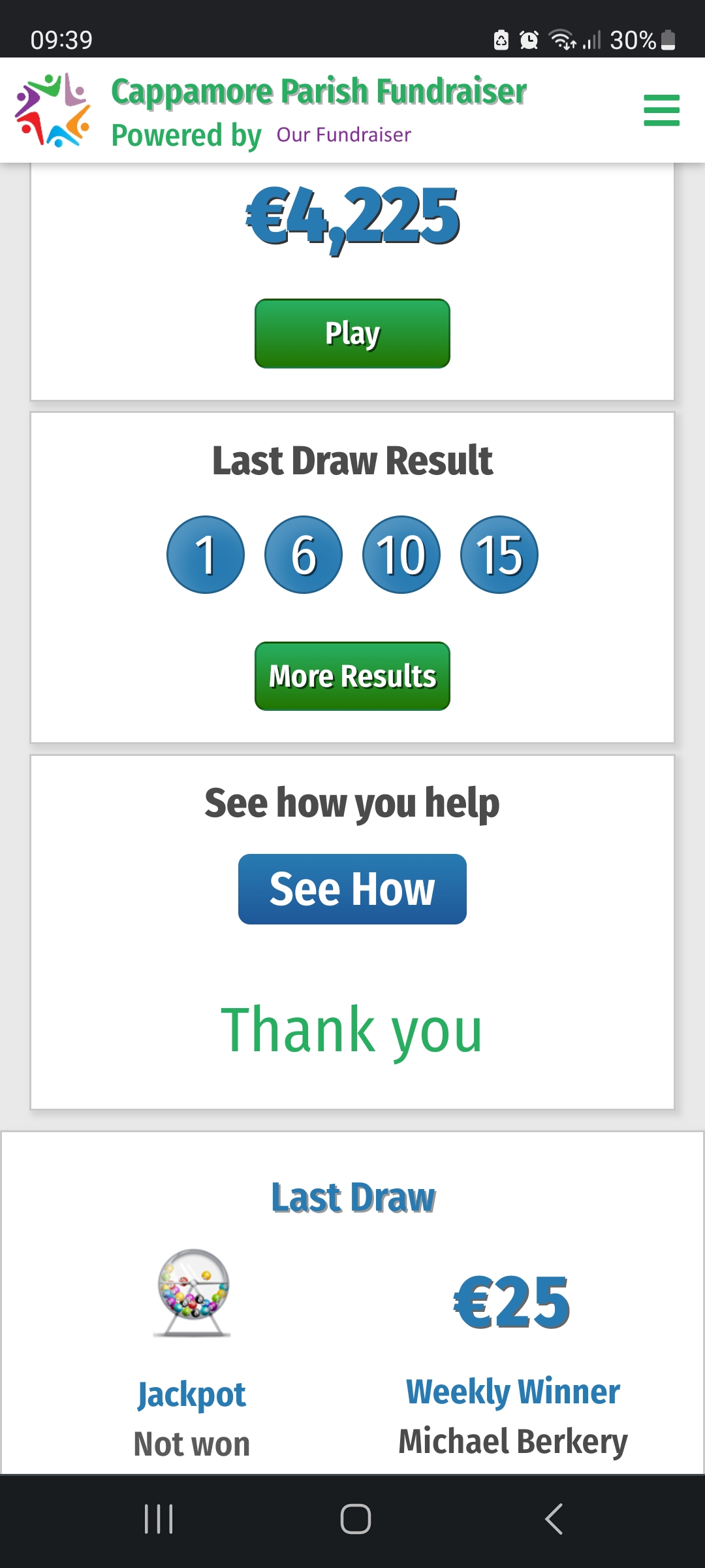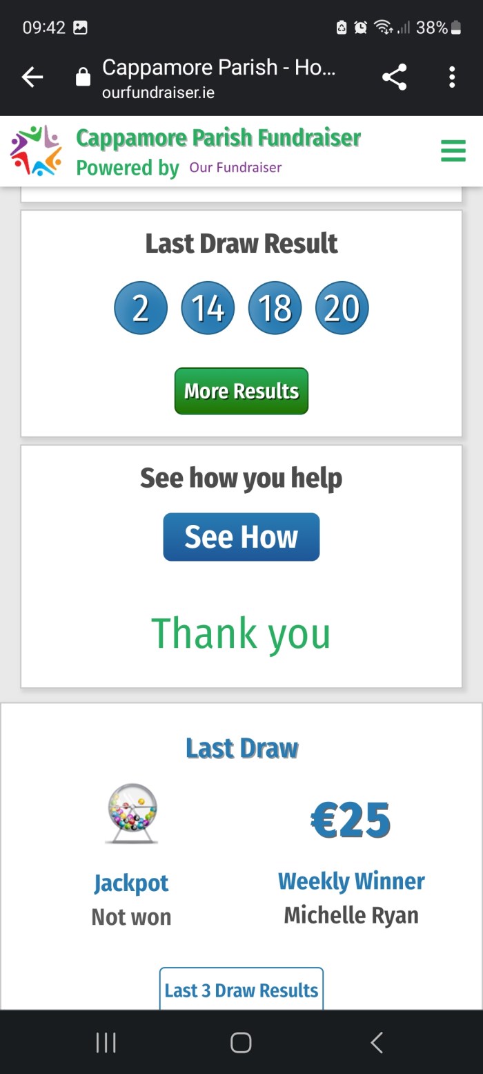 Next draw for a Jackpot of €14,800 will take place at the Clubhouse on Mon 4th Sep 2023 at 9:30pm.