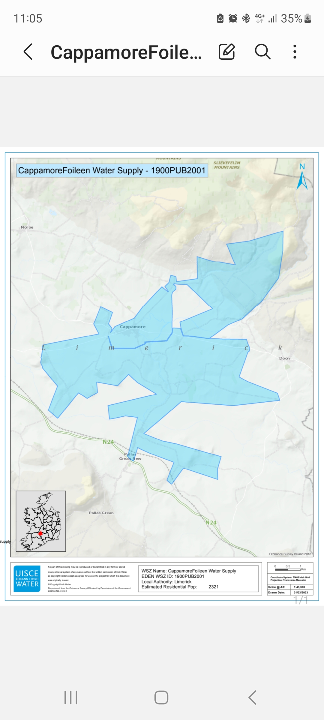 Cappamore Foileen Boil Notice Map of Scheme Posted on September 27, 2023 by Cappamore Cappamore Foileen Water Scheme Map from Uisce Eireann