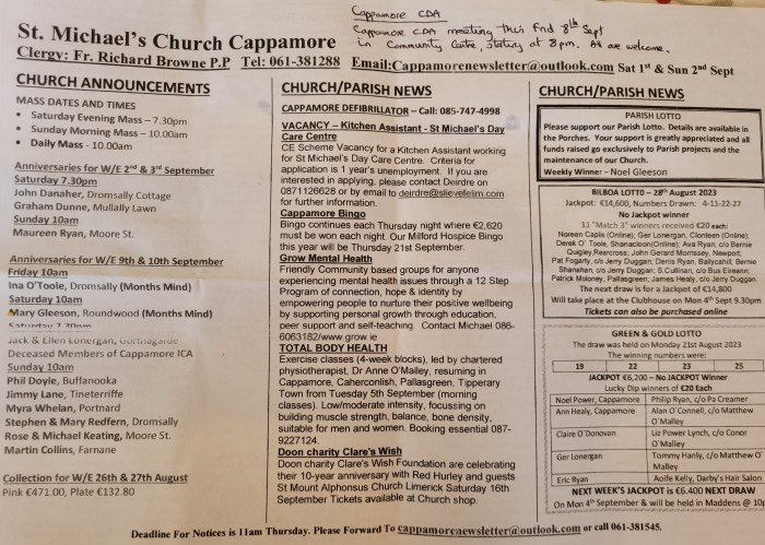 Cappamore Leader Notes 1 Sept 2023