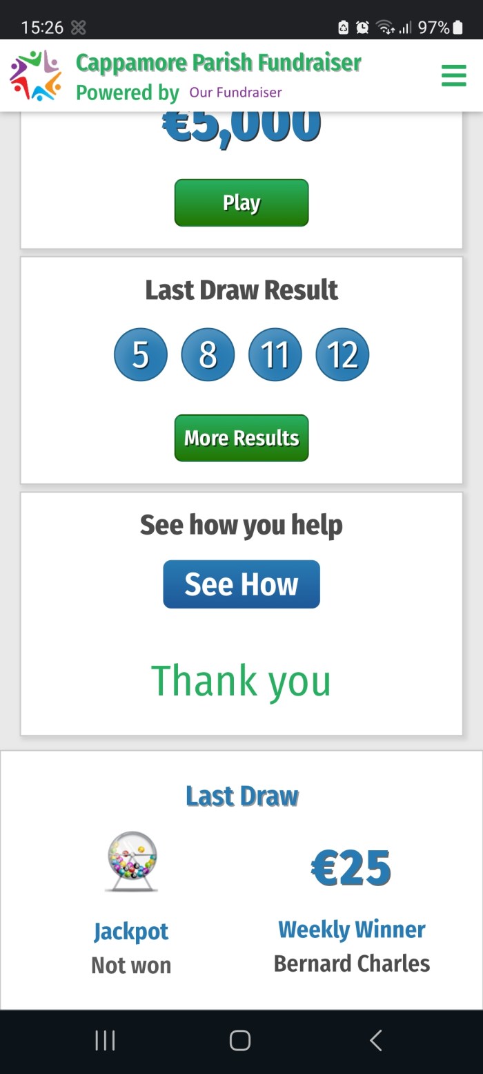 Cappamore St Michael’s Church Lotto Results Posted on November 17, 2023 by Cappamore Cappamore St Michael’s Church Lotto Results