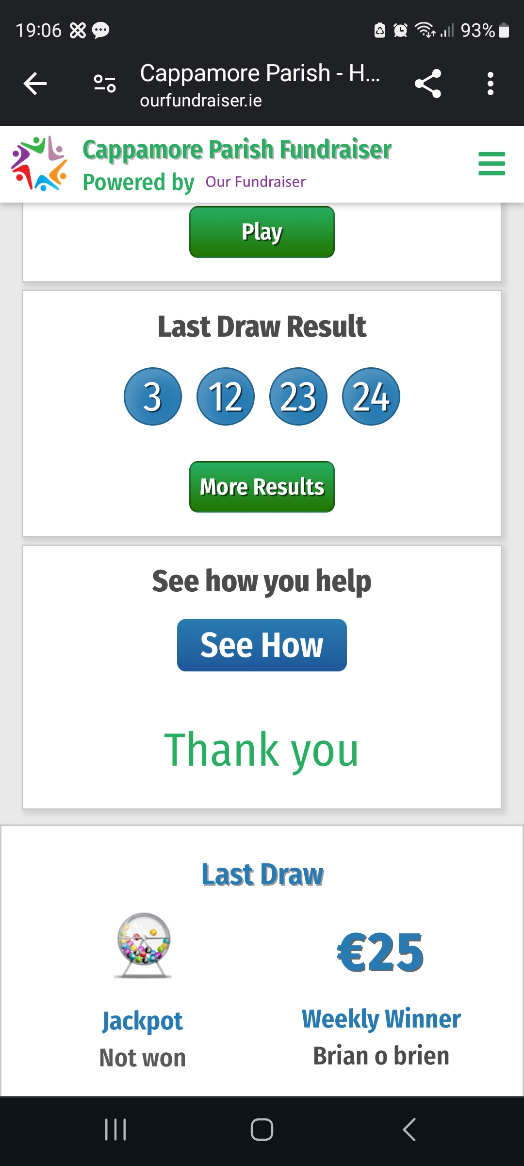 Cappamore St Michael’s Church Lotto Results Posted on April 12, 2024 by Cappamore Cappamore St Michael’s Church Lotto