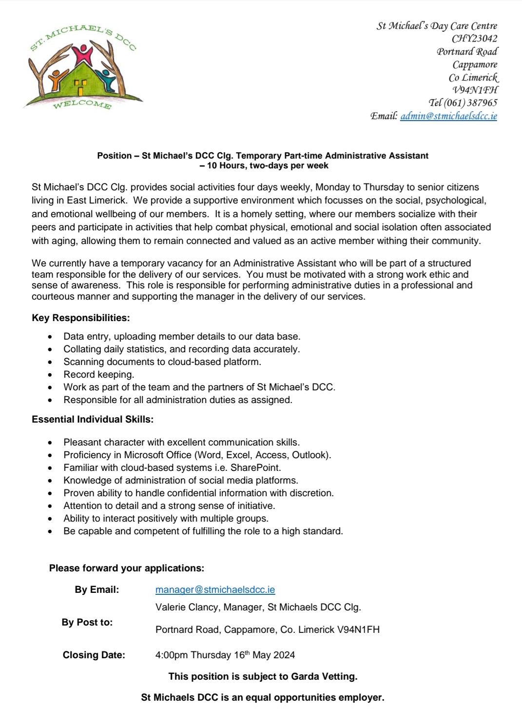 Cappamore St Michael’s Day Care Center – Vacancies X 2
