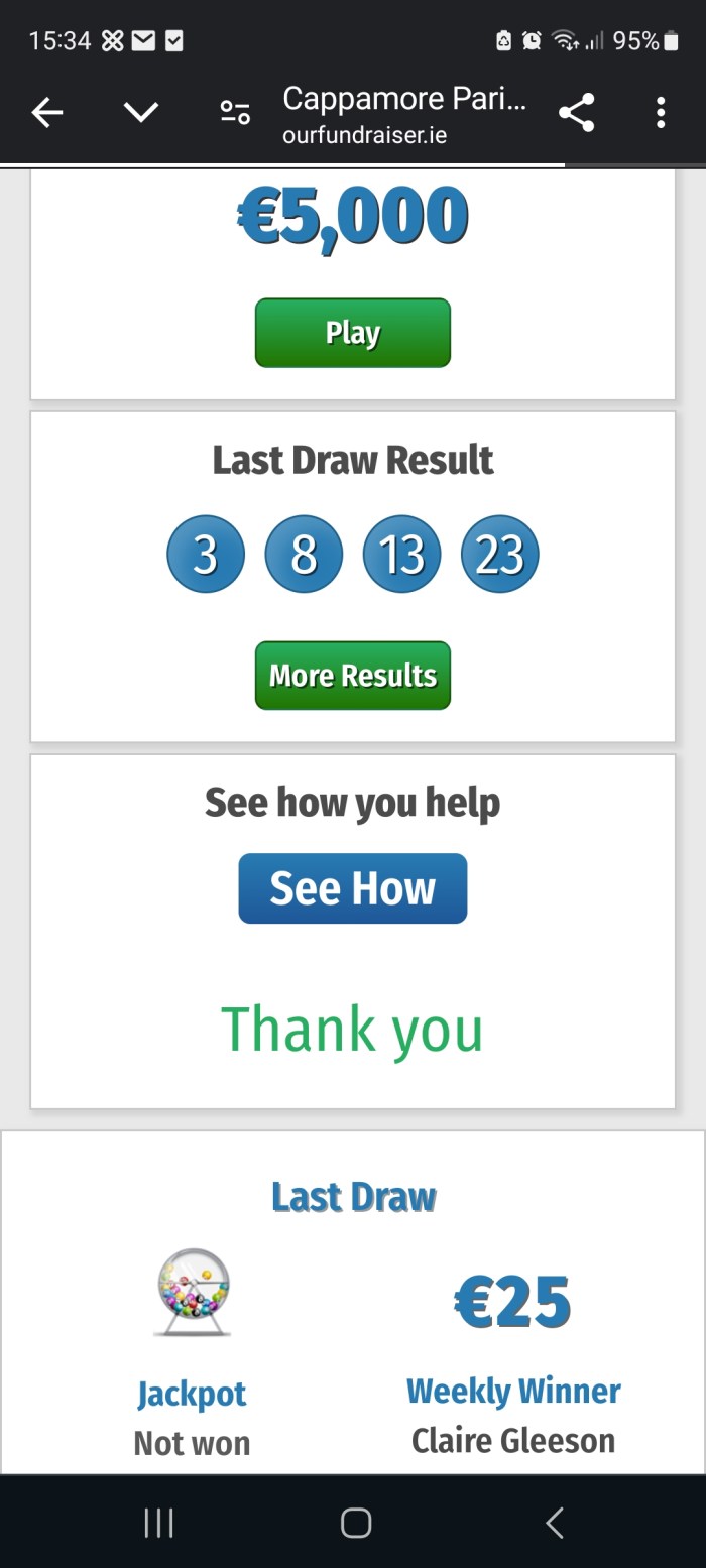 Cappamore St Michael’s Church Lotto Results Posted on June 7, 2024 by Cappamore Cappamore St Michael’s Church Lotto Results
