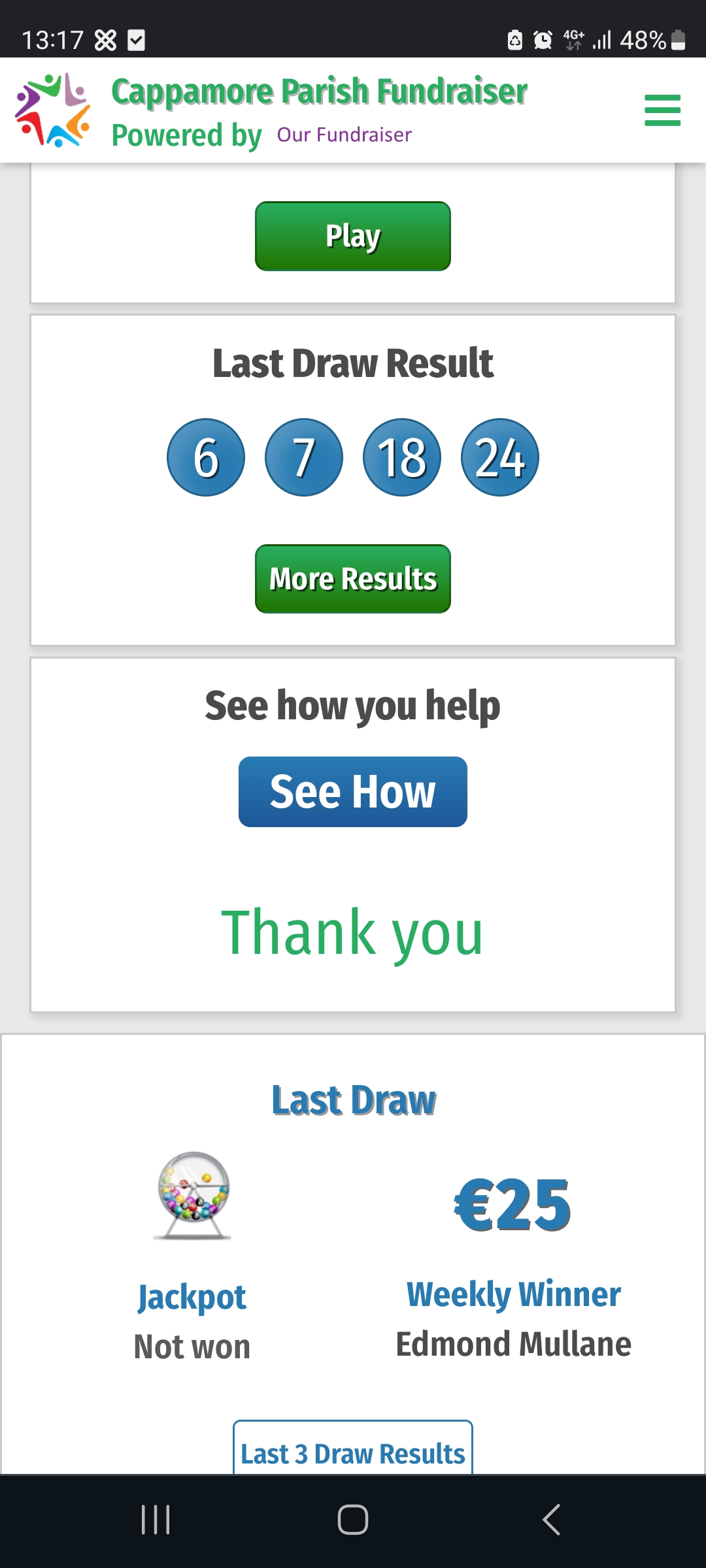 The jackpot of €10,400 was not won. The numbers drawn were 1 – 7 – 15 – 18. Three “Match 3” winners received €70 each: Elizabeth Power-Lynch, c/o Jerry Duggan; Séimí Nolan, Rearcross; Joey Nolan Family, Herbertstown. Next draw for a Jackpot of €10,600 will be held at the Clubhouse on Mon 2nd Sep 2024 at 9:30pm. Tickets can now be purchased online.