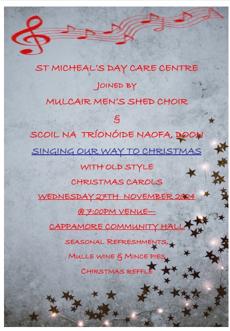 St Michaels DCC Carol Evening Posted on November 18, 2024November 18, 2024 by Cappamore Subject: St Michaels DCC Carol Evening