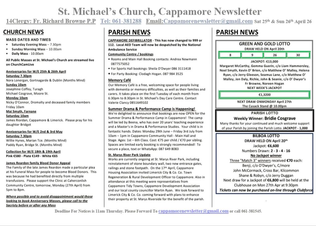 Email: cappamore.ie@gmail.com