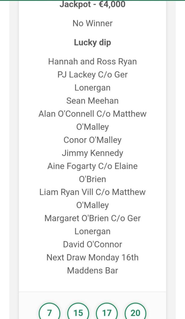 Cappamore GAA & Camogie Club Lotto Results